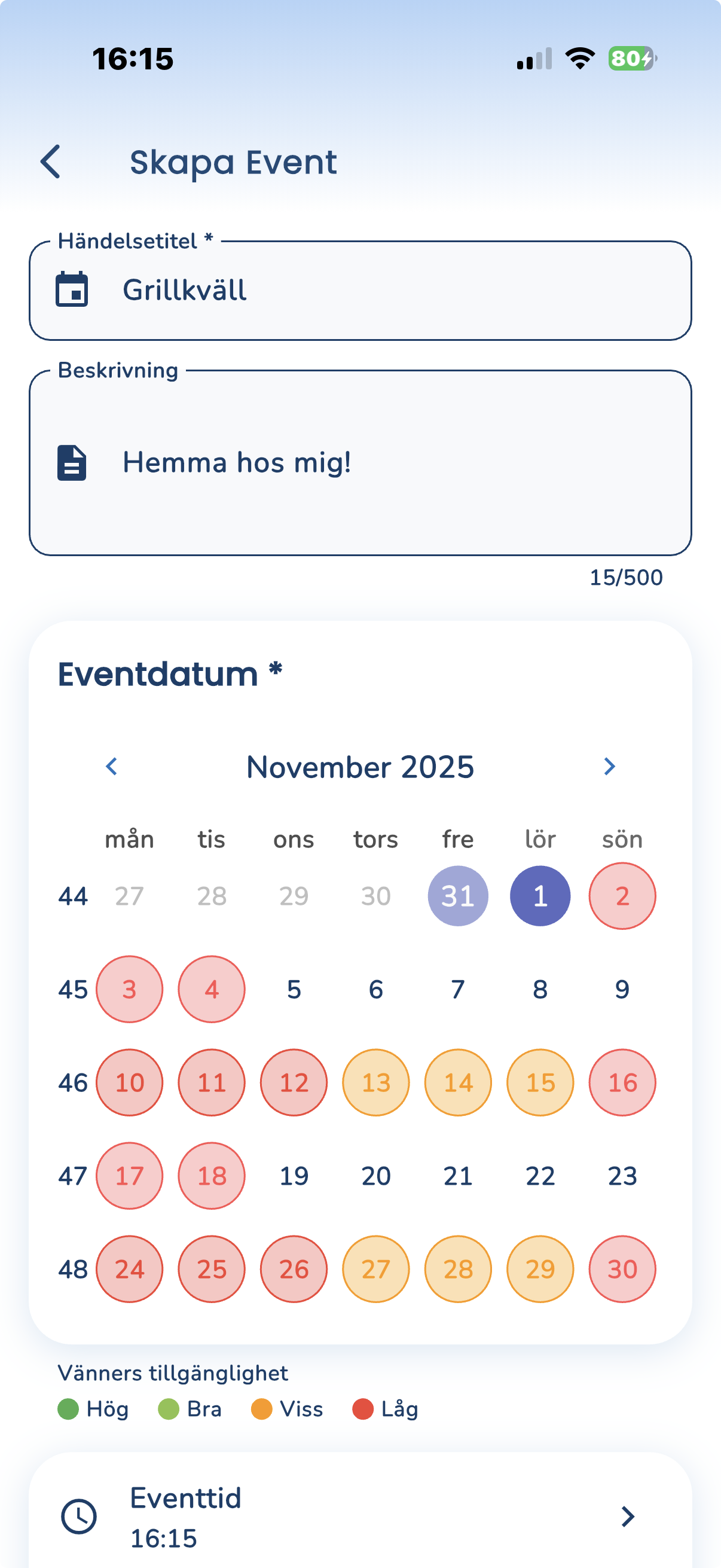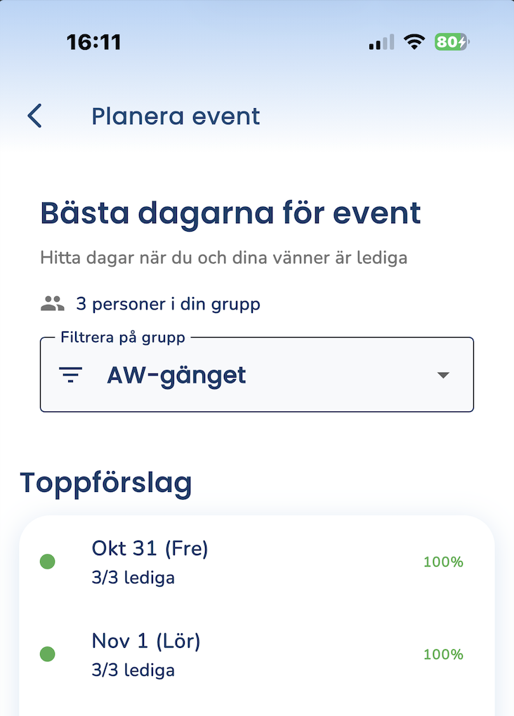 Äntligen en app som faktiskt gör det lätt att få ihop planerna med vännerna! Vi har alltid haft svårt att hitta helger när alla kan, men nu ser man direkt när det funkar. Dessutom känns det så smidigt och snyggt!